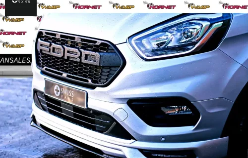 | Ford Transit Custom Hornet Kit | Front bumper with fog lights, branded grille, wide body arch extensions, side skirts, rear diffuser, rear spoiler | Rally-inspired, sporty, aggressive |